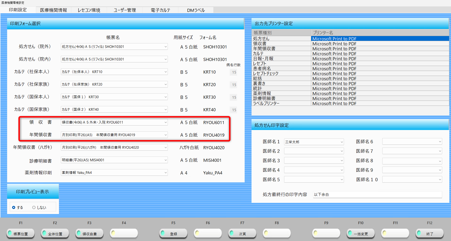 2.印刷設定の「年間領収書」の帳票名を確認してください。