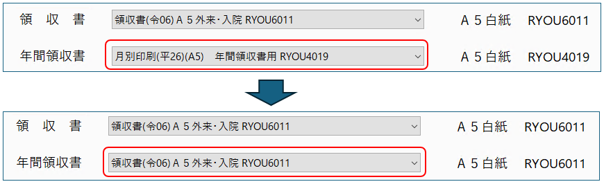 (これまでは領収書で設定している帳票を、年間領収書で使用していました)