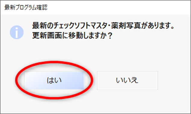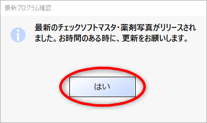 チェックソフトの最新バージョン確認に不具合が発生しており、下図のウインドウは表示されません。