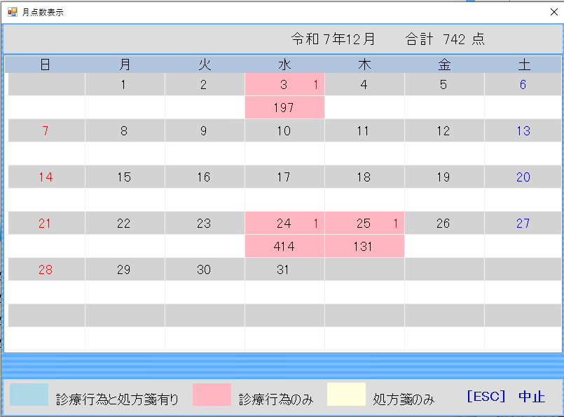 点数表示を行う場合は、来院日選択の日付をクリックしてから「F1点数表示」を押してください。